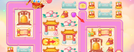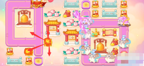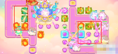 4、前方魔法球附近障碍物清理,放置回旋镖,这一关有冰冻兔,要小心,注意解冻。