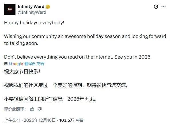 在该篇节日祝福贴文中,工作室写道:"祝大家节日快乐!愿我们的社区度过一个美好的假期,期待不久后与大家交流。请不要相信你在互联网上读到的一切。2026年见。"尽管未直接点名,此举普遍被视为对近期传闻的间接回应。
