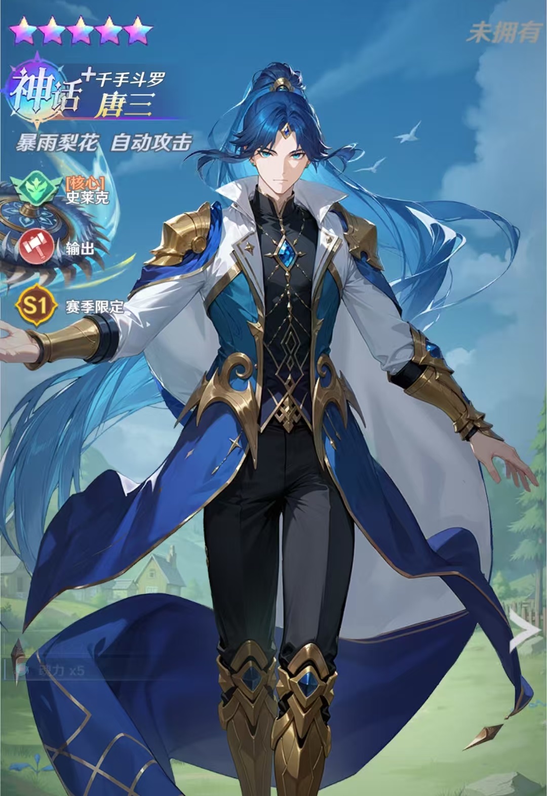 位列榜首的是唐三。其核心机制围绕"暴雨梨花针"展开:在专属被动加持下,该大招持续时间达16秒,并存在概率额外召唤第二组,形成双线高频范围压制。暴击率提升效果直接强化单次命中伤害,其余被动还提供全队伤害加成,使其成为兼具爆发密度与团队赋能能力的首选主C。