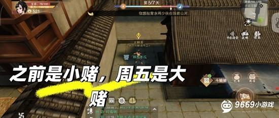 第5天,早中斗蛐蛐,晚上赌大的,进内场赌,如果赚到1000可以当晚买个1000的房子,不然第六天早上会破伤风,如果钱不够,那就买个药(80)吃
