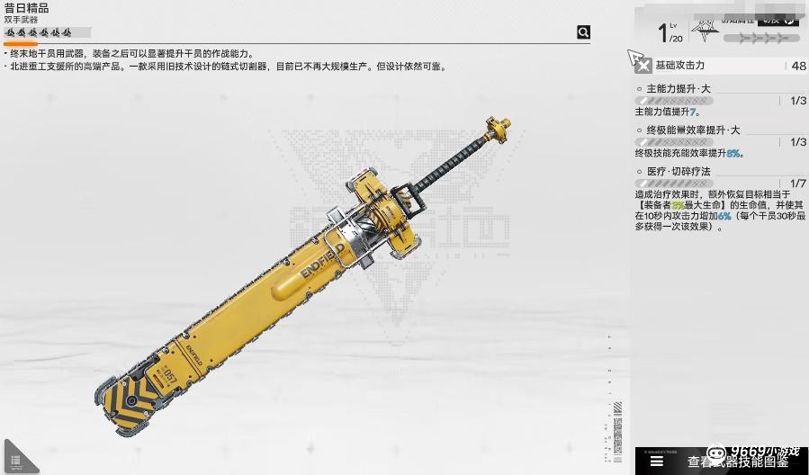 昔日精品作为双手武器,其核心优势在于攻防一体的特性。主动技能触发时不仅能提供5%最大生命值的群体治疗,还能为装备者附加6%攻击增益,30秒CD的设计使其成为持久战的首选。值得注意的是,该武器对治疗型干员的适配度极高,尤其在需要兼顾输出与生存的高压副本中表现突出。