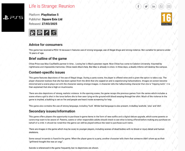 沉寂许久的《奇异人生》系列近日突然迎来新动向——欧洲评级机构PEGI意外曝光了一款名为《Life is Strange: Reunion》的全新作品。这款被标注为PS5平胎读占的游戏,由Square Enix发行,预定2025年3月27日发售,其突如其来的曝光让全球粉丝既惊喜又困惑,尤其当玩家发现这竟是发生在《Life is Strange: Double Exposure》主线剧情三天前的故事。