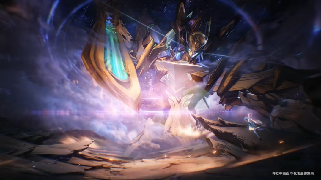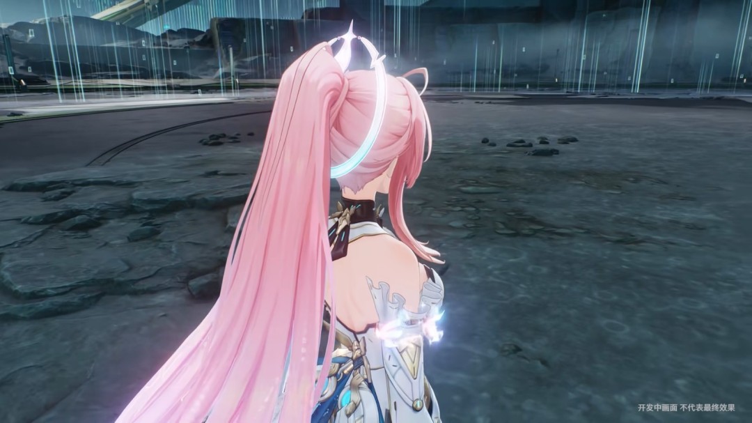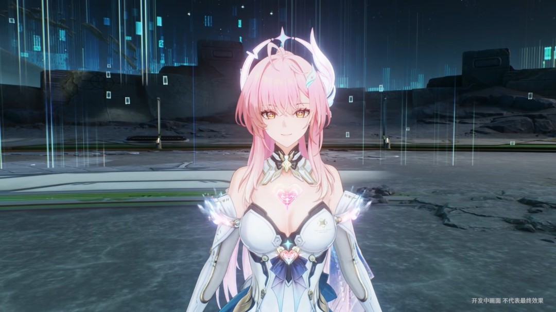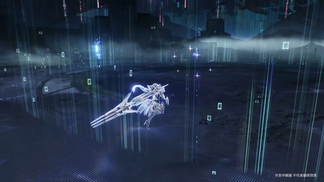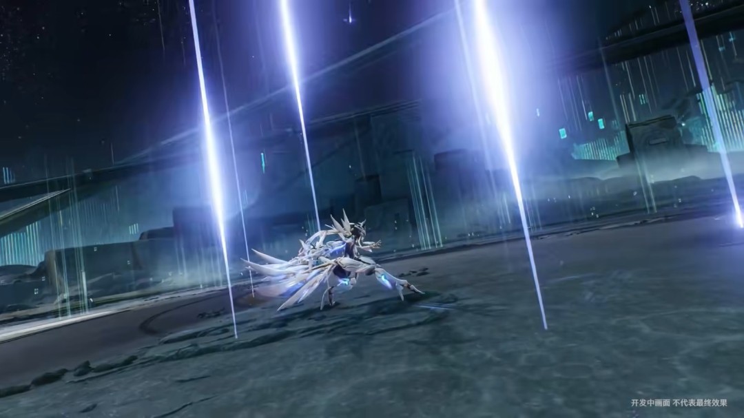 在爱弥斯使用共鸣能力时,会显化出「隧者兵装」并与之融合,变身为机兵形态。她轻盈地化作星辉,轻歌着于无尽的夜色中飞行,点亮黑暗中的群星。