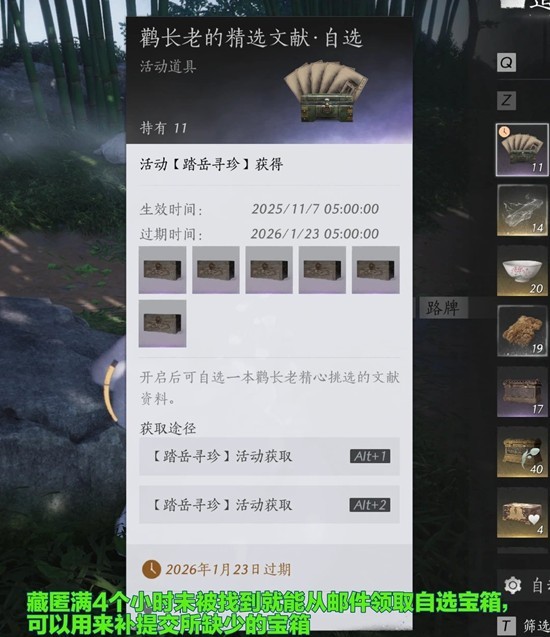 藏匿满4个小时未被找到即可从邮件领取自选宝箱,可以用来补提交所缺少的宝箱