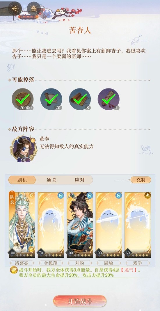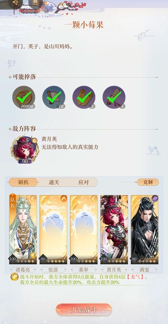 低层挑战需特别注意:迎战黄月英前必须保留敌方小兵存活,否则会触发即死机制。建议提前卸除部分星石,同时为董奉和张郃配置攻击型星石来增强治疗量,这是保命的关键策略。