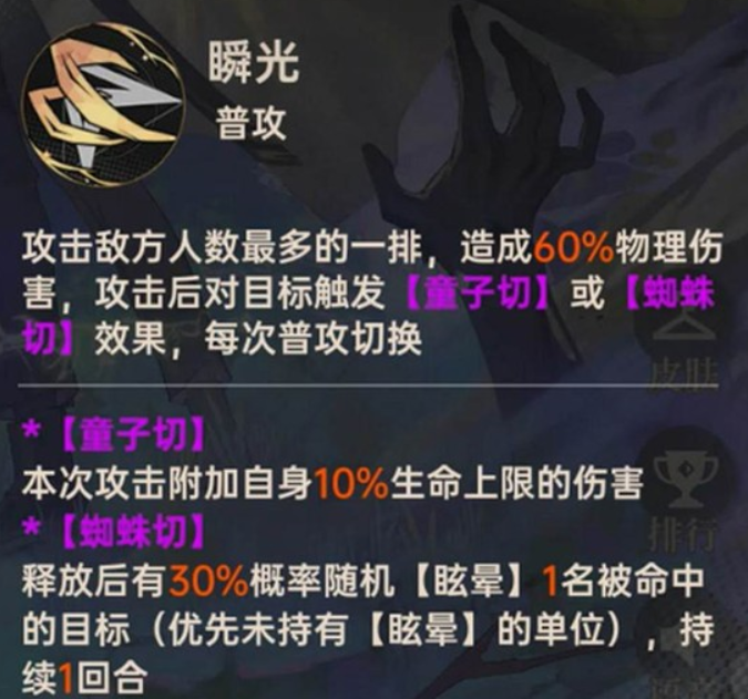 天照命的普通攻击会锁定敌方人数最多的那一横排。他的攻击会在"童子切"与"蜘蛛切"两种形态间交替。童子切能造成额外的伤害,而蜘蛛切则有30%的概率眩晕目标,并且会优先选择未被眩晕的敌人。当角色达到超限3级后,若自身处于"王权"状态,普攻将有50%的几率同时触发童子切的增伤与蜘蛛切的眩晕效果。