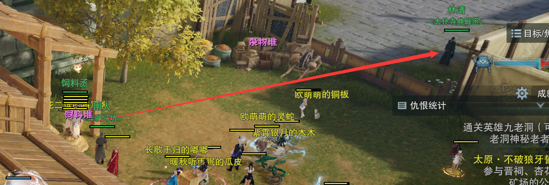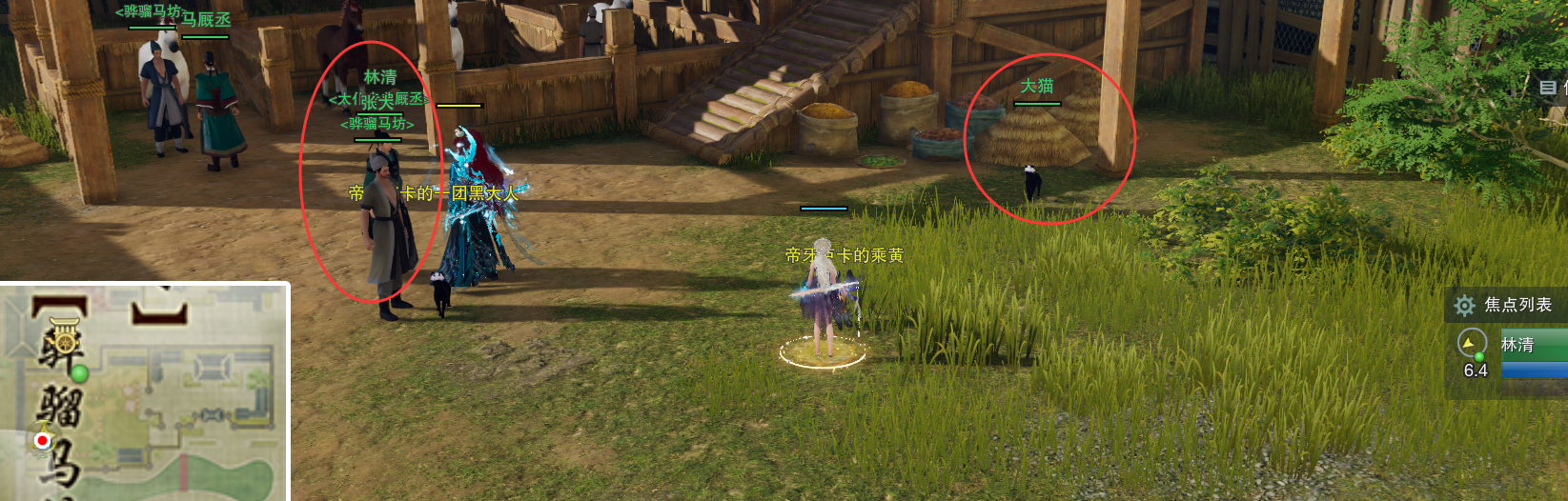 6、对话【张大】,然后对话【林清】,然后在地图左下角的骝和马字中间的位置触发剧情,剧情结束后对话【大猫】