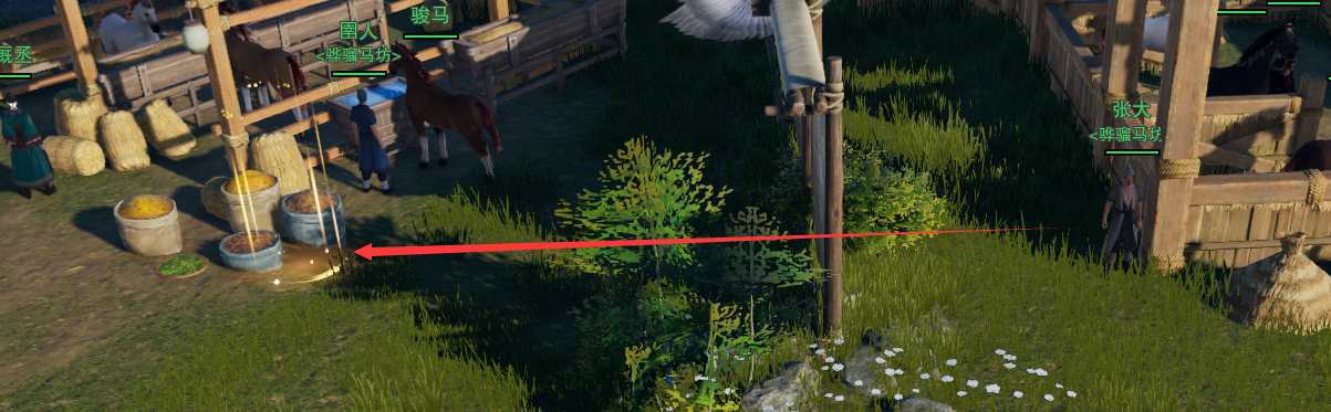 2、对话【张大】,张大在触发点旁边的马厩外面