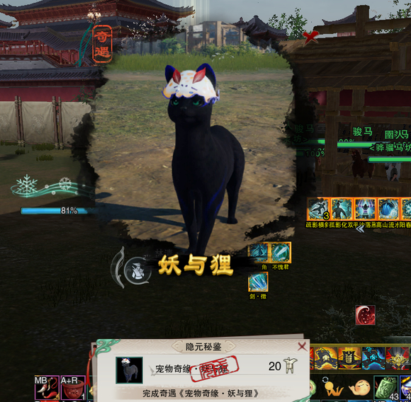 完成"妖与狸"奇遇后,玩家不仅能获得可爱的黑猫宠物"一团黑大人",还能解锁后续的互动彩蛋。这只神秘的黑猫偶尔会在玩家进行日常任务时突然出现,带来意外的惊喜。值得注意的是,该奇遇的触发时间有一定随机性,建议在游戏内人流较少的时段多次尝试。有玩家反馈,在完成奇遇后继续与林清对话,还能听到关于这只黑猫的更多背景故事,为整个任务增添了更丰富的剧情深度。