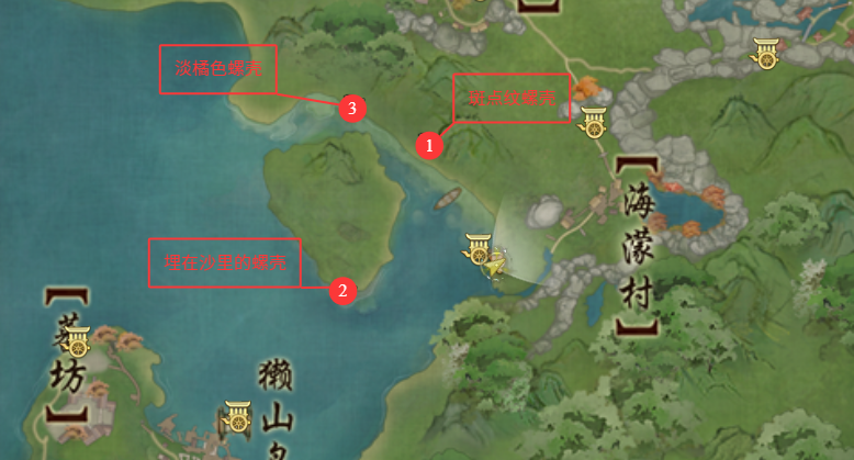 4、斑点纹螺壳有损坏,需要再找找,并提示去旁边小岛看看