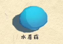 水蘑菇的外表是湖水一般的蓝色,形状圆润,其中蕴含了少量的水元素,可以在魔法森林中的朽木上采集到