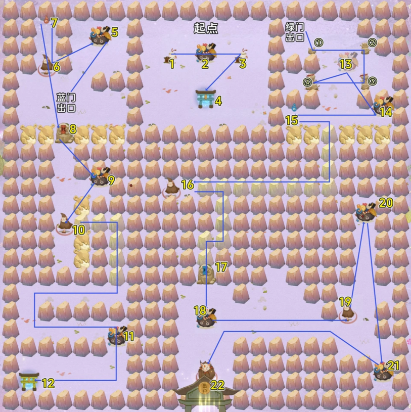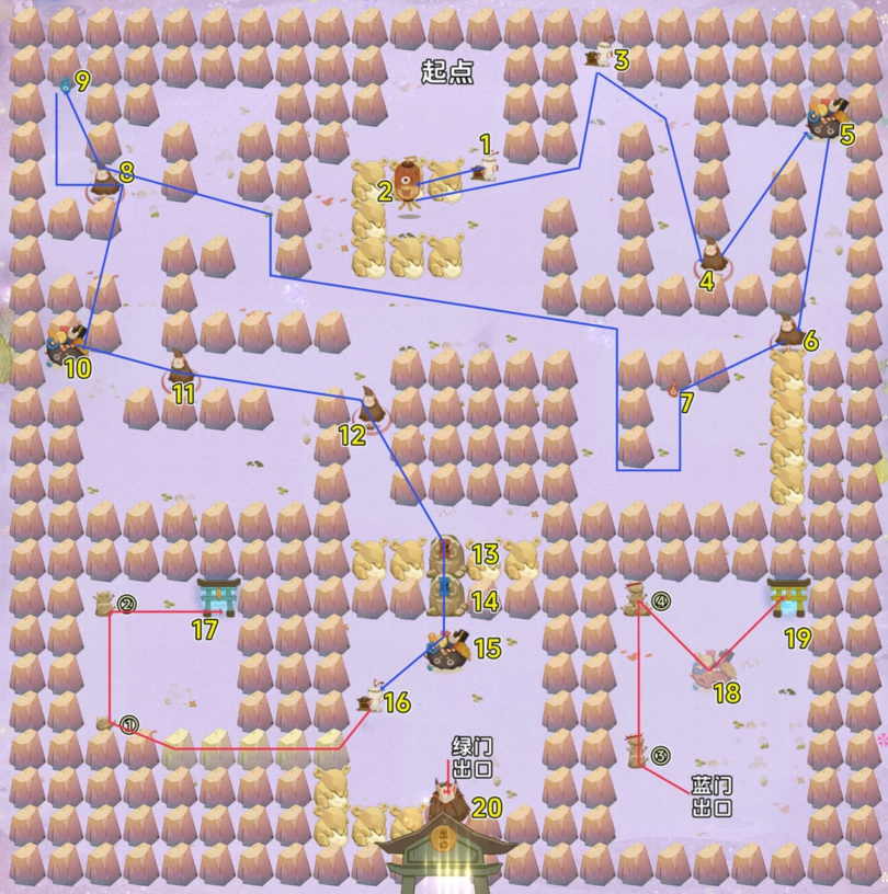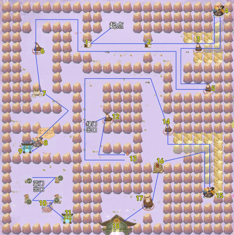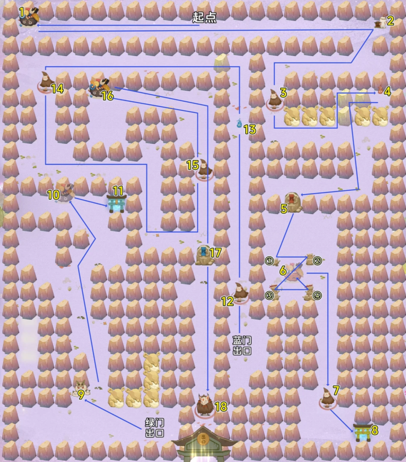 ② 石柱按照①~④顺序交互,编号18宝箱会出现