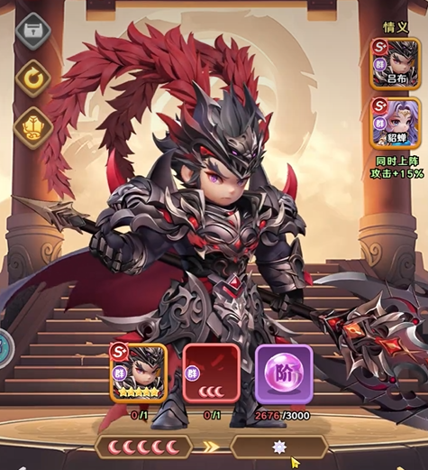 吕布的上限确实很高,但前期启动比较慢,所以队伍配置很关键。1号位可以放诸葛亮,让他最先出手给全队加怒气和伤害。张飞当主坦克放中间,他能嘲讽还能给血量最低的队友套上无敌盾,自己还有不屈效果,可以说十分耐打。辅助位置选需要选择小乔和吕绮玲。