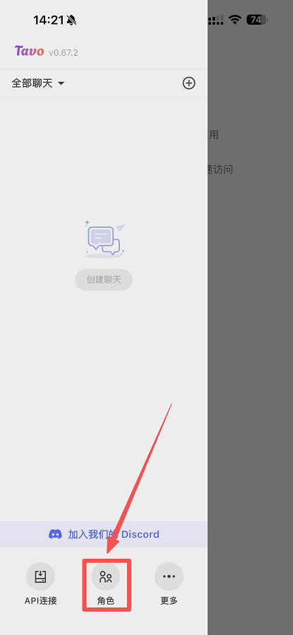1、进入tavo后,点击“角色”按钮