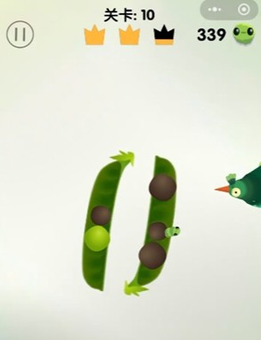 1、观察豆荚的青豆和黑豆位置,瞄准啄掉青豆。