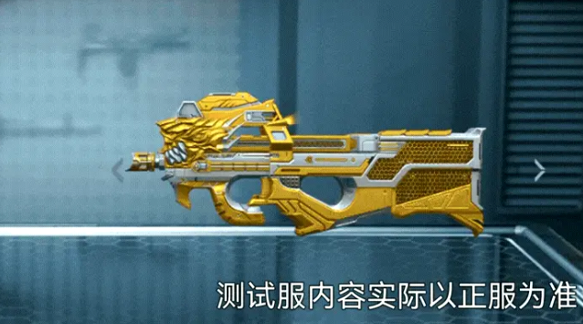 这把武器如黄金浇筑的猛兽,枪身以鎏金为主调,鎏金纹路如烈焰翻涌,与冷冽银白勾勒出凌厉的机械棱角。枪托处蜂窝状纹理似淬火后的鳞甲,枪头的兽首装饰獠牙森然,仿佛蛰伏的雷暴之主,蛰伏时敛藏锋芒,动则裹挟闪电金芒锐气。银白部件如寒铁点睛,在鎏金的炽热中晕开冷冽质感,整体既像熔铸了雷霆的战器,又似身披金铠的机甲巨兽,仔细看去,还能发现藏于武器右侧前方的闪光弹,在关键时刻有妙用。