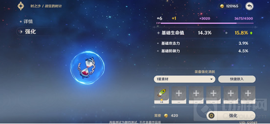 圣遗物强化:目前仅能消耗其他圣遗物进行强化。