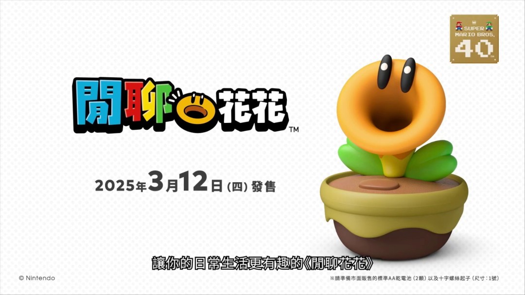 任天堂于3月12日正式宣布,旗下热门游戏《超级马力欧兄弟惊奇》中备受欢迎的“会说话的花”角色闲聊花花,将推出一款实体互动玩具。该产品定价35美元,已于今日在My Nintendo商店开启预售,并确定于2026年3月12日正式上市。
