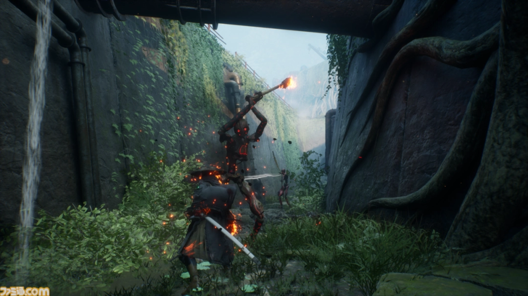 虽然是一条线性路线,但并非只是单调乏味的步行;你可以体验到运用艾玛“不洁”能力的植物系特色战斗。当然,你也会遭遇与腐尸和横冲直撞的魔像的战斗。