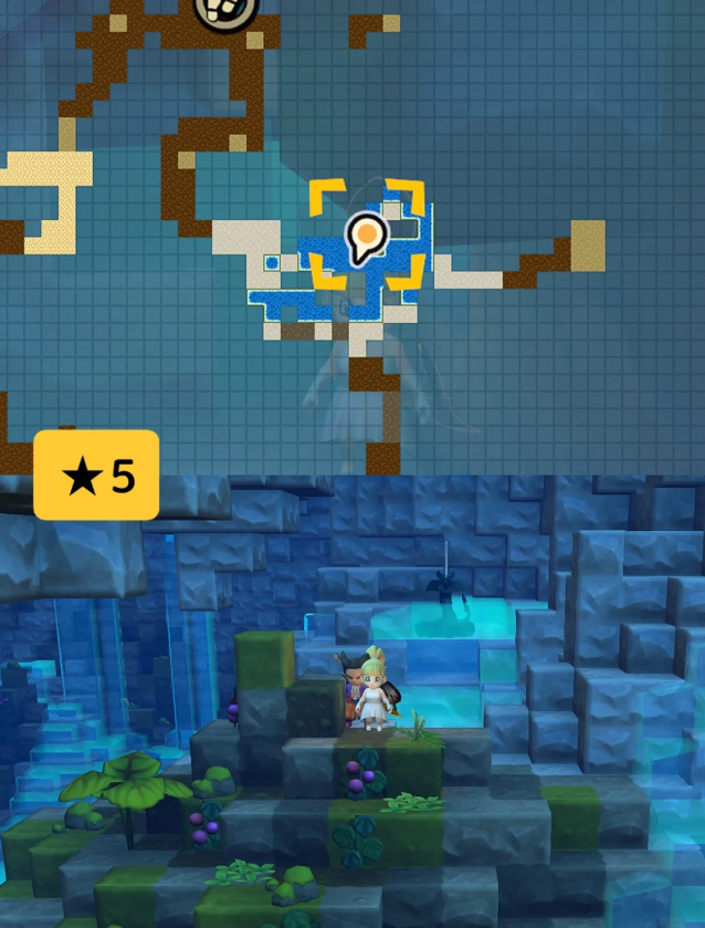 5、湖中间有柱子和篝火的那座白色山结构的顶部流水中,能看到喷水池,样子和小龙一样