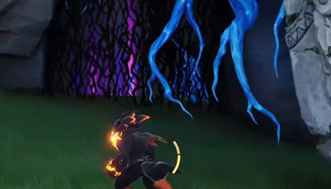 腾云驾雾地宫是全图隐藏宝箱密度最高的区域之一,多数宝箱需通过环境互动或机关解谜触发。首处宝箱位于主入口附近:靠近区域起点后,可见一个紫色电箱,将其向左推动,使其精准嵌入左侧断开的电路接口。通电后,前方封闭门自动开启,宝箱即显露于门后开阔空间中央。