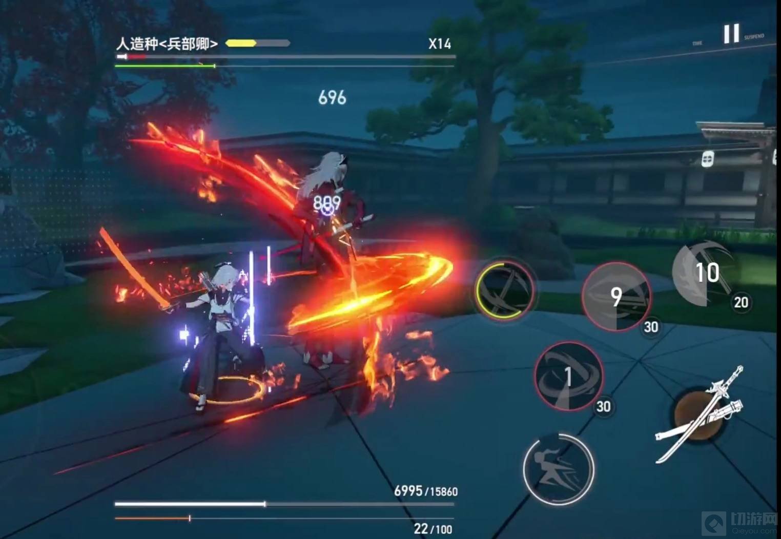 4、小怪清完后在去打boss,同样的注意拉扯,打完一套技能后直接就闪避,不要去贪刀。龙切的技能都是需要衔接平a的,才能打出火刀使伤害最大化。