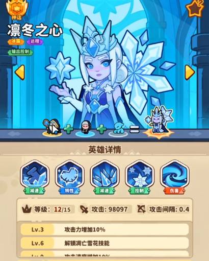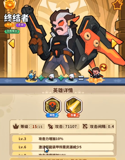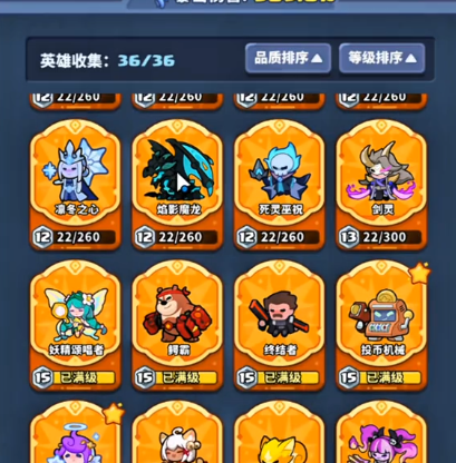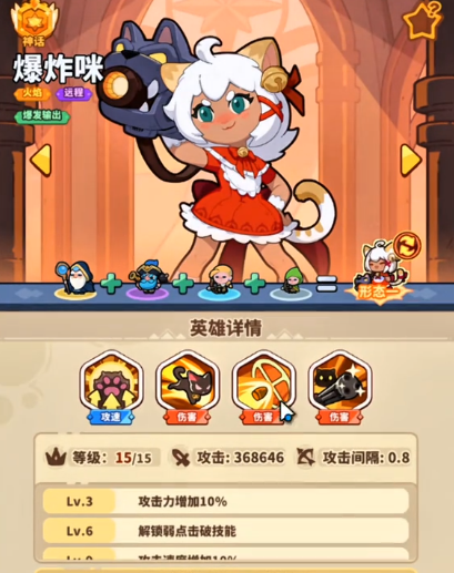 3、然后再把辅助英雄投币机和妖精拉到12级,这两个英雄拉到12级。主c拉到12级之后,如果考虑自己去打噩梦,自己去做单c自强,打噩梦100,就去拉15级的猫咪。15级的猫咪前期3+3,4+4,这个是打噩梦的唯一的主c英雄;