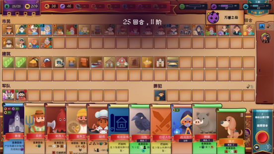 你是一个新王国的领袖,白手起家,意欲登上繁荣的顶峰。每个回合,您都可以打出卡牌来增加王国的市民、建筑、动物和士兵——创造一座可以生产大量资源的城市,并保其免受疾病、侵略和其他挑战的威胁吧。