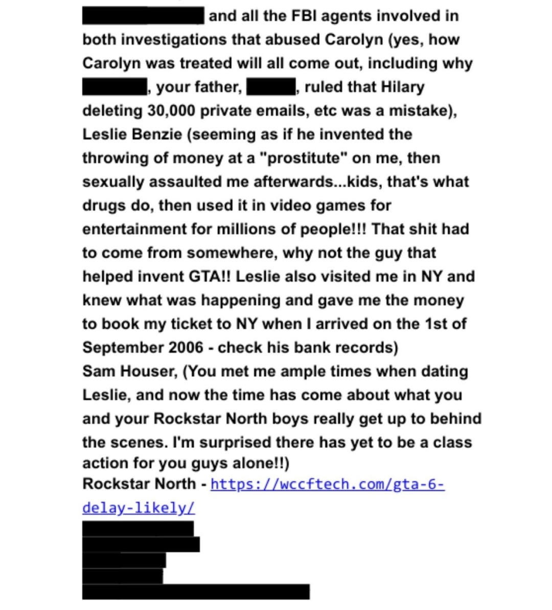 这些陈述出现在兰塞姆拟定的一份“证人名单”中,该名单旨在支持她对美国联邦调查局及正府提起的诉讼。名单中人物众多,包括诸多国际知名政商人士。上述针对游戏界高管的指控,即摘自这份文件中于2023年12月写就的电子邮件部分。兰塞姆在邮件中表明,她将这些人士列为她诉讼案件中的证人。