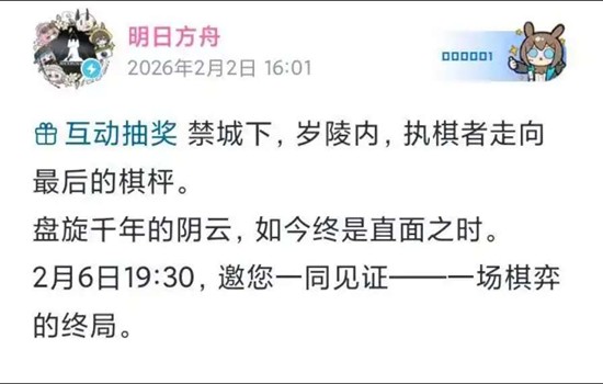 2月6日晚上7点半,无论博士是蹲直播还是等回放,这场"棋弈终局"都值得一看,以上就是明日方舟春节前瞻直播时间及内容预测。更多游戏资讯,攻略内容敬请关注,您的支持是我们努力的动力!
