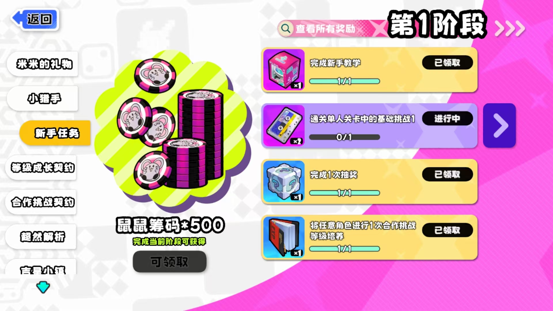 结构化成长路径,分阶段引导玩家熟悉角色切换、连理机制、合作副本规则等核心玩法。每项任务完成后均可领取对应奖励,包括“新手自选箱”(可定向选择初始角色)、抽奖券及“鼠鼠筹码”。后者专用于合作挑战模式商店,可兑换角色突破材料、天赋碎片及稀有皮肤,显著缩短前期养成周期。