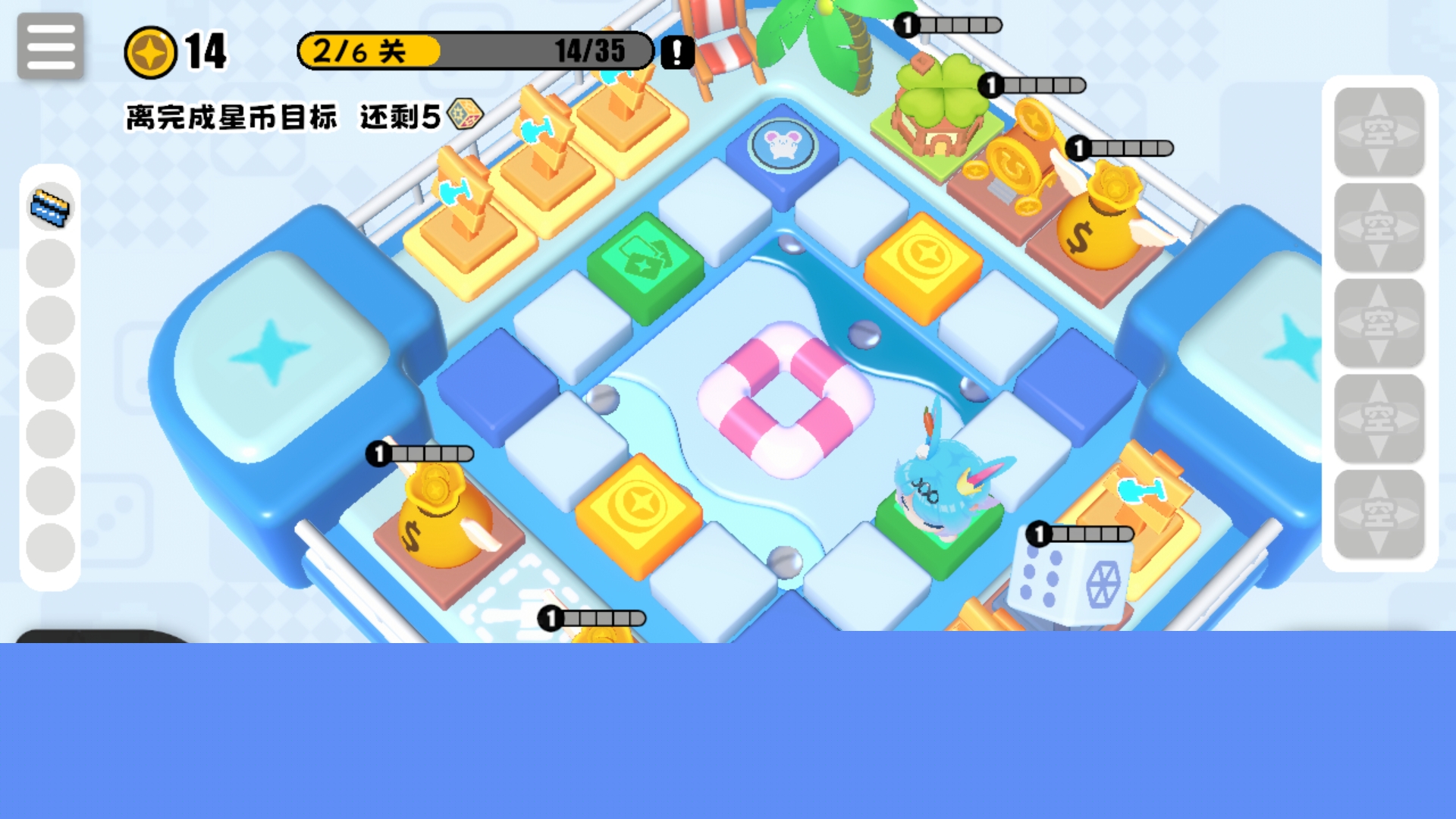 全新策略经营玩法,采用掷骰行进+地块建设模式。玩家通过投骰决定移动格数,在空置地块购买产权,并建造餐厅、工坊、驿站等功能建筑,从而触发收益、事件或增益效果。关卡目标明确:每关须累计达成指定数量“星币”方可通关,考验资源规划与长期运营能力。