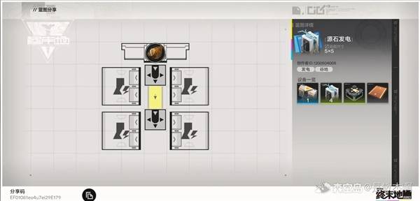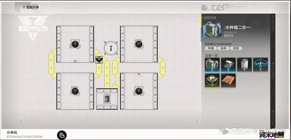 首先俯瞰模式下旋转视角,确保河在左边,左上角是种植区,包含两个种植二合一种砂叶,两个水种植二合一种芽针;在适当位置建好上下方向的仓库,在仓库左边放两个息壤一个芽针剂&息壤液,其中协议储存箱设置为仓储模式,这样就会仅生产300个息壤溶液到箱子里,需要就从箱子里拿,右边放一个低容武陵电池一个低容电池75%一个装备原件12.5%一个源石发电,不弄100%效率是为了配平息壤;然后在左边河岸建水泵把水接到水种植机 天有烘炉 反应池的液体入口,目前一个水泵供水量刚好给两个设备用,以及把砂叶放到无水种植的采种机里,芽针放到水种植的采种机里,最后根据实际情况调整发电部分。