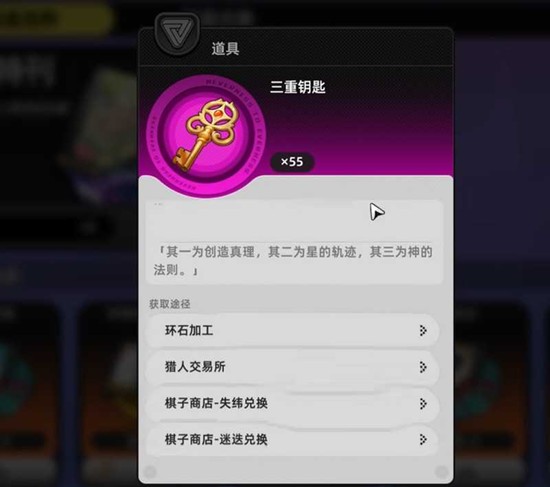 目前游戏内提供了多种获取三重钥匙的渠道,但并非所有途径都适合普通玩家。环石加工兑换是一种方式,即消耗160个环石换取一把三重钥匙。环石作为异环中的高级货币,通常用于抽取限定角色,用它来兑换钥匙的性价比较低,一般只建议资源充裕的玩家考虑。
