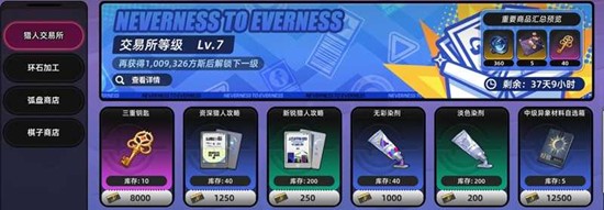 猎人交易所兑换是更为直接的途径。玩家可以使用游戏内基础货币“方斯”进行兑换,且兑换上限较高,理论上可以换满每期的额度。方斯货币通过完成日常任务、消耗体力等常规玩法即可稳定获得,积累速度尚可。对于不希望投入过多资源又想稳定获取钥匙的玩家而言,这条渠道最为可靠。