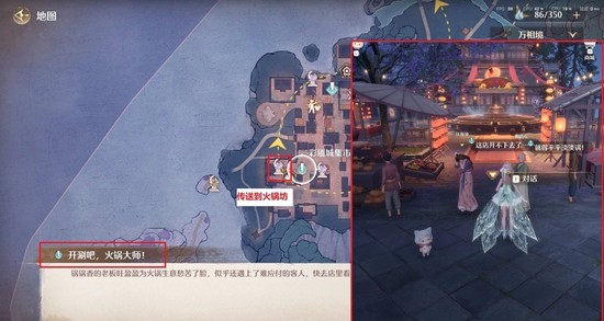 见闻任务开启《开涮吧,火锅大师!》,传送到【火锅坊】与NPC对话