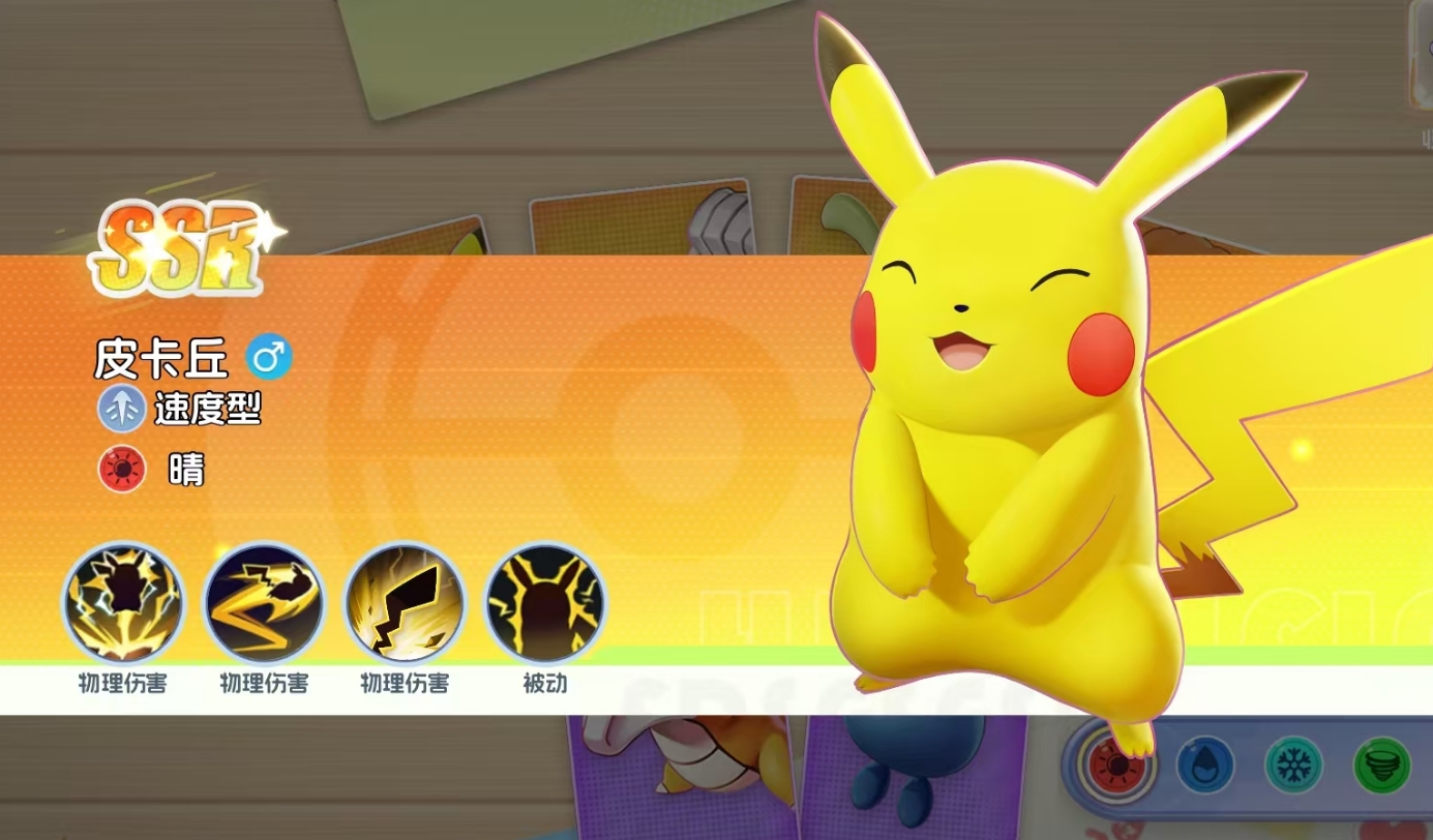 作为开局即得的SSR宝可梦,皮卡丘具备优秀的群体输出基础。释放终极技后可对范围内多个目标造成高额雷电伤害;其被动技能支持“充电”层数叠加,叠满3层时,所有攻击将附带麻痹效果,显著削弱敌方闪避率与移速。该机制在推图清杂与精灵塔多波次挑战中持续生效,前中期过渡顺畅,后期搭配怒气循环装备仍保有稳定AOE压制力。