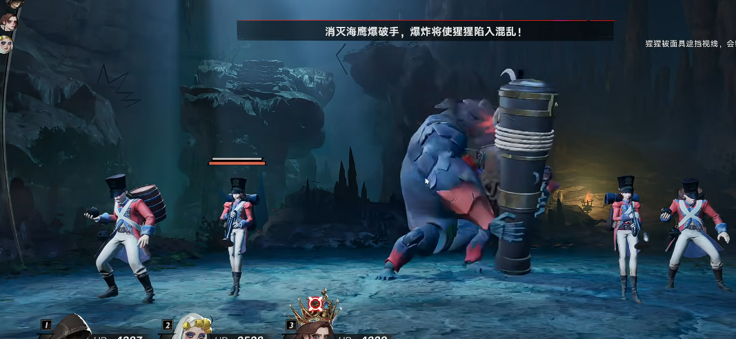 战斗分阶段执行:第一阶段集中火力攻击麦克本体,暂不处理小怪;当麦克血量降至约2/3时,两侧小怪将发动“投掷食物”动作,为其恢复大量生命值。此时需立即调整集火目标——兜帽与修女转向清理小怪,船长维持对麦克的持续输出。一旦两名小怪被清除,麦克将失去回血来源,团队可全力集火完成击杀。过程中若出现队友濒危,修女应即时启用大招进行关键救场。