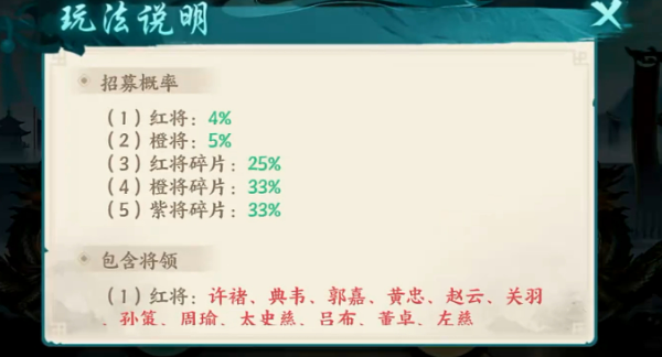 点将台抽卡规则明确:单抽消耗1枚点将令,十连抽固定消耗10枚。抽取结果涵盖红将、橙将等完整武将,亦可能获得武将碎片。为保障基础体验,游戏设定三十抽保底机制——累计抽取达30次时,必定获得至少1名红将。该机制显著降低零氪玩家的培养门槛,通过长期积累点将令并科学规划抽卡节奏,完全可实现全红将阵容的逐步成型。