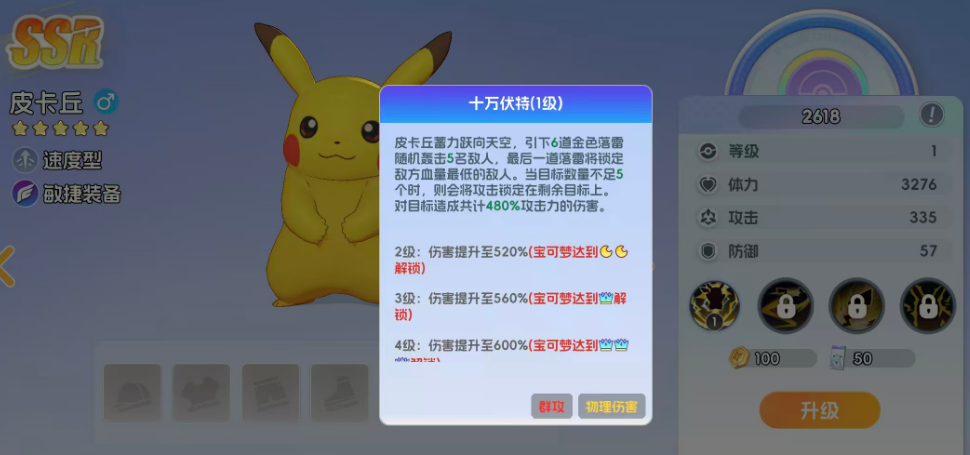 培养皮卡丘需聚焦两大关键属性:速度与攻击。等级提升直接解锁全部技能与被动效果,并同步强化基础攻速成长;而速度数值每提高1点,不仅影响出手顺序,更深度联动核心技能“电球”的命中率与伤害倍率——速度差越大,加成越显著。因此,前期获取的经验药剂、突破材料、属性升级石等资源,建议集中投入,避免分散培养。野外探索与日常副本产出的经验值,优先用于皮卡丘升阶,可高效达成等级驱动的属性跃升目标。