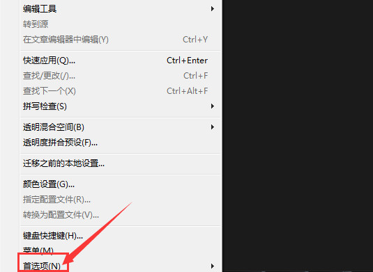 2、点击下方选项列表中的"首选项"。