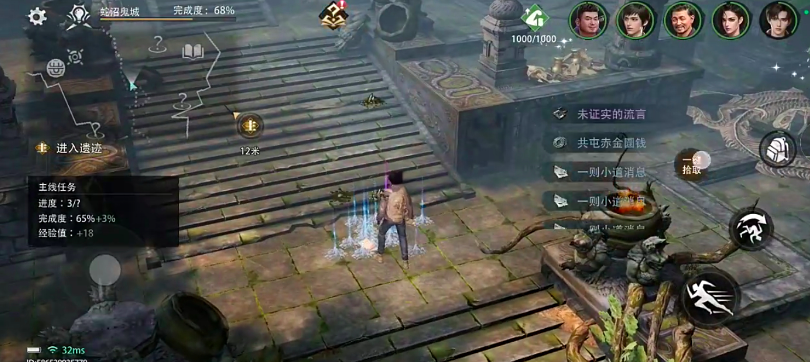 进入神殿需完成前置三重试炼:风蚀渡、雨林遗迹与峡谷裂缝。通关后,角色将被传送至西王母国核心区域——蛇沼鬼城。推荐编队为吴邪、张起灵、王胖子、阿宁、吴三省五人组合;物资配置需包含常规背包、洛阳铲各1件,恢复剂与解毒剂各5份,以及寻龙尺10个,确保探索容错率与持续作战能力。
