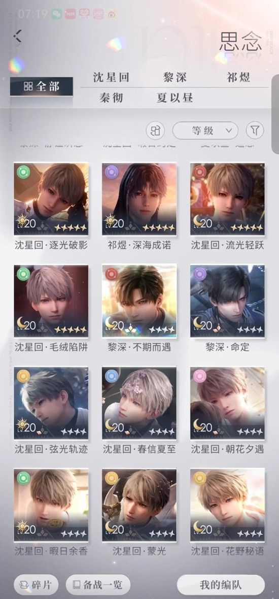 1.优先升级所有男主的四星卡和五星卡至20级并突破,三星卡看情况,如果特别缺再升