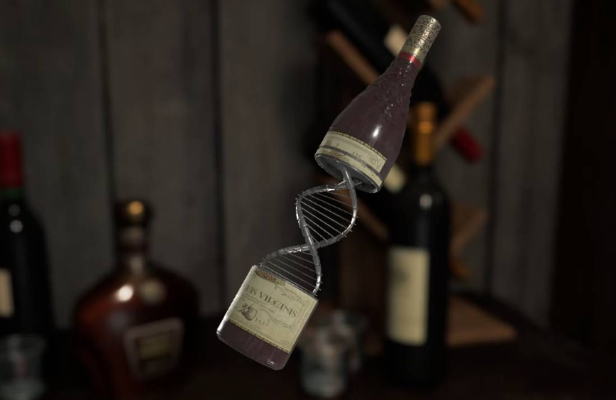 贵宾室里有很多可以互动的物品,其中武器架旁桌上的酒瓶和解谜有关,旋转酒瓶使葡萄图案拼合起来,然后伸展酒瓶得到【双螺旋模型】。把双螺旋模型放到房间中间的台子上,会发现整个贵宾室其实是个电梯