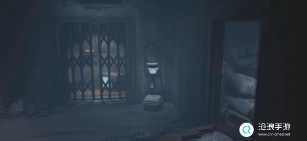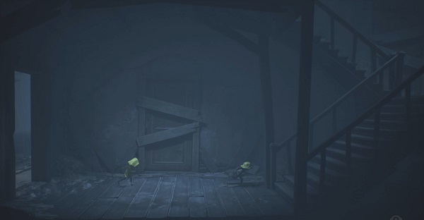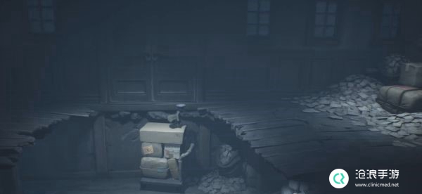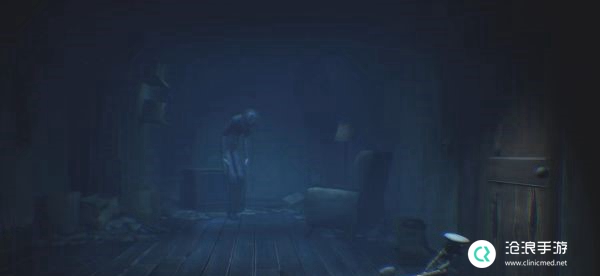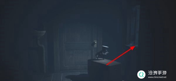 在下一个房间中西装男人会从走廊远处缓缓向我们走来,我们需要将凳子拖拽至窗台下面,然后拽开木板以离开房间。