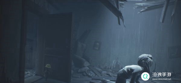 进入房间后由于建筑结构不稳,房屋开始坍塌,尽快推开房门进入下一个房间。