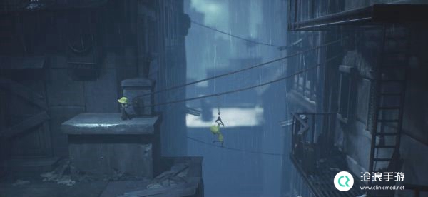 通过衣架将小六送到对面平台,然后直接跳向对面被小六接住,通过梯子继续向上。
