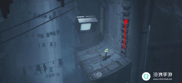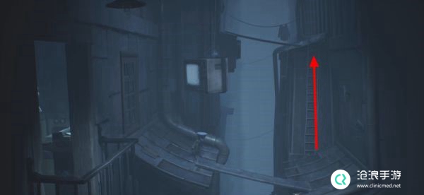 再次将电视打开并进入,可以直接来到窗外,从前方的梯子处向上。
