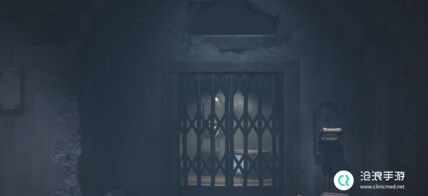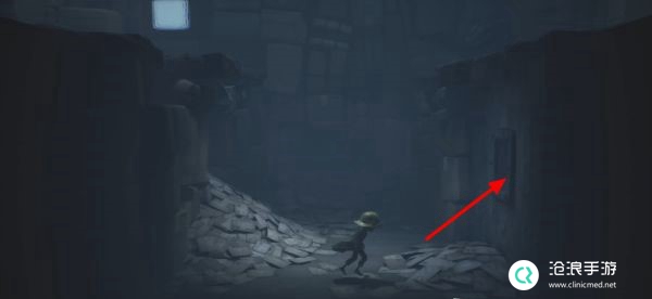 一路向右走将门上的木板拽下,会有一个大人从门后突然冲出,返回水池边的控制杆处并将其拉动,使水中通电将大人消灭。