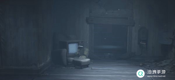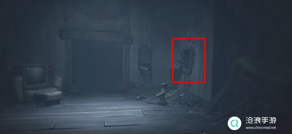 在房间中可以看到一个大人被电视信号吸引,暂时不要理会从背后悄悄通过进入右侧房间。